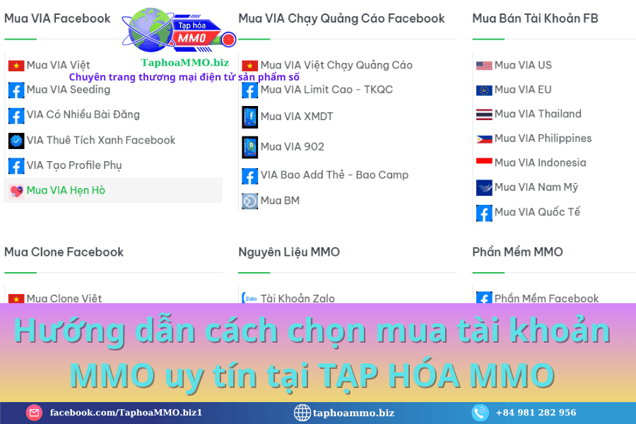 "Cách mua VIA tự động chi tiết : Hướng dẫn mua VIA tự động tại Taphoammo.biz